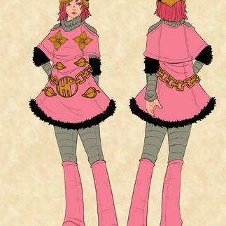 Starting off with a base I sketched so all of the versions of her would have the same body type I based this from the other female characters, only this time I made her face slightly more masculine to show that she had been pretending to be a man until her identity was revealed.